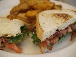 sandwich - bacon, lettuce and tomato with mayo on toasted white bread, plus